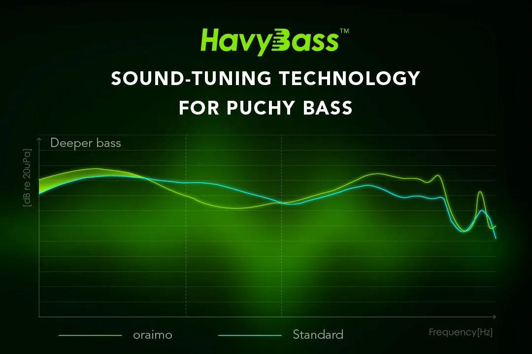 HavyBass™ is oraimo's proprietary sound-tuning technology to increase low frequency for deep and powerful bass in your music.