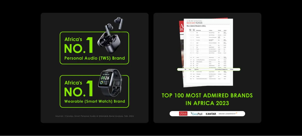 In the same year, our earbuds and smartwatches became the top choice in Africa.